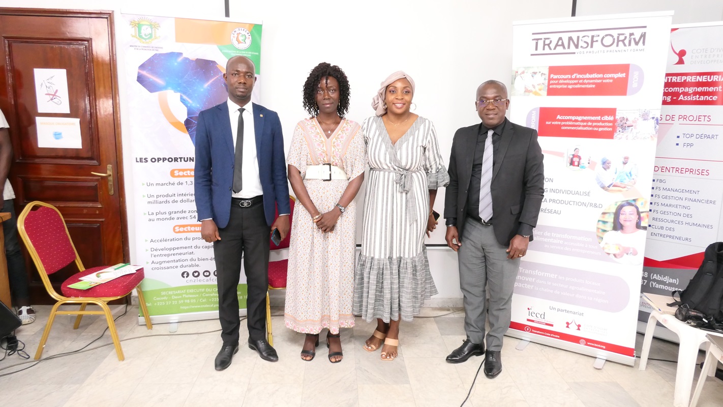 Le développement des exportations des produits ivoiriens issus des filières agricoles et agroalimentaires, représente une voie prioritaire pour valoriser nos produits et notre savoir-faire en vue de créer de la valeur, de la richesse et des emplois dans notre pays. C’est à cet effet que le 7 juillet 2022, le Secrétariat Exécutif du Comité National de la Zone de Libre Echange Continentale Africaine ( SE CN-ZLECAf) a pris part à la conférence TRANSFORM TALK au siège de l’Institut Européen de Coopération et de Développement (IECD) où se sont réunis plusieurs acteurs du secteur et autres parties prenantes.